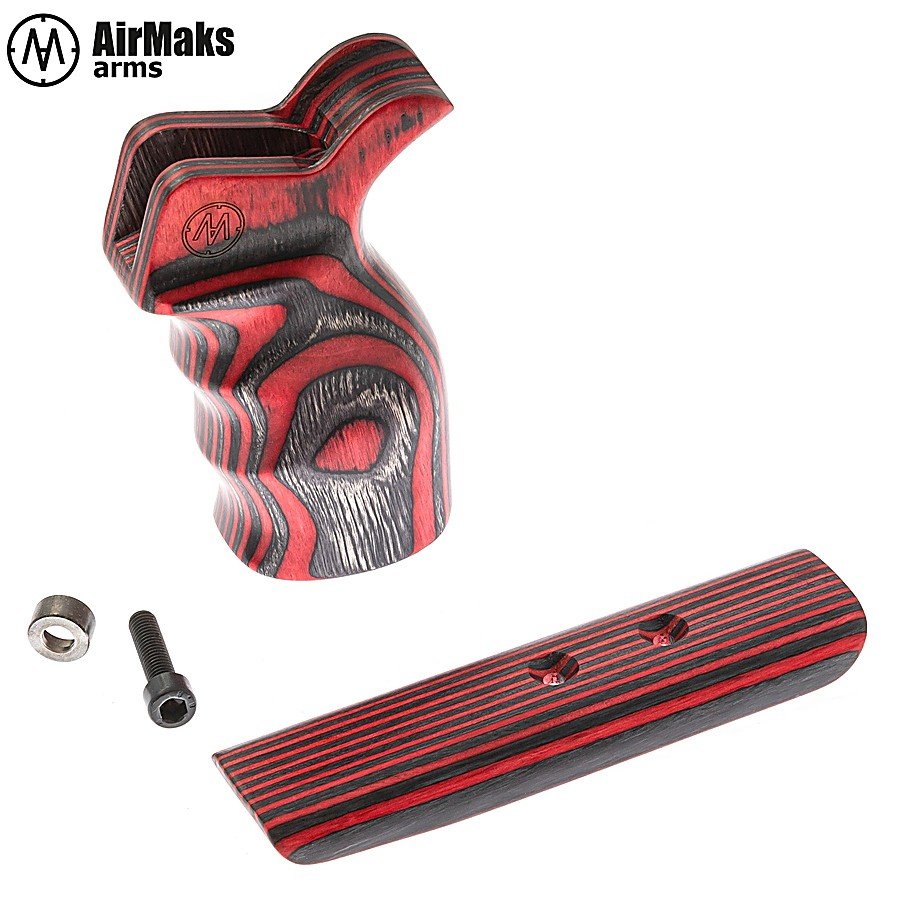 This grip set is made from Laminate wood in different colours and natural wood grain. The platform is specifically designed for the AirMaks Krait series, with the fit precisely matched to the contours of this air rifle model. The grip features an anatomical shape with a thumb rest for optimal control.