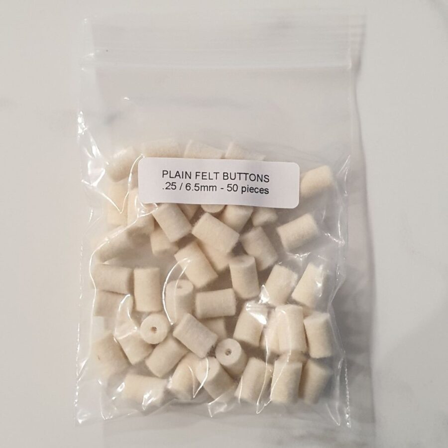 PatchWorm Plain felt cleaning buttons are very effective Lapping and or removing tough fouling. Hard felt conforms to the barrel lands and grooves for maximum contact. Just slide button on and pull it through. Can be used singly, stacked or even in tandem with patches - just slide patch on first, felt button second, then pull through. Generally, plain felt buttons and patches are sufficient for routine cleaning of most .25 Rifle Bores Works great with Wipe-Out and Patch-Out for jacketed bullet fouling.