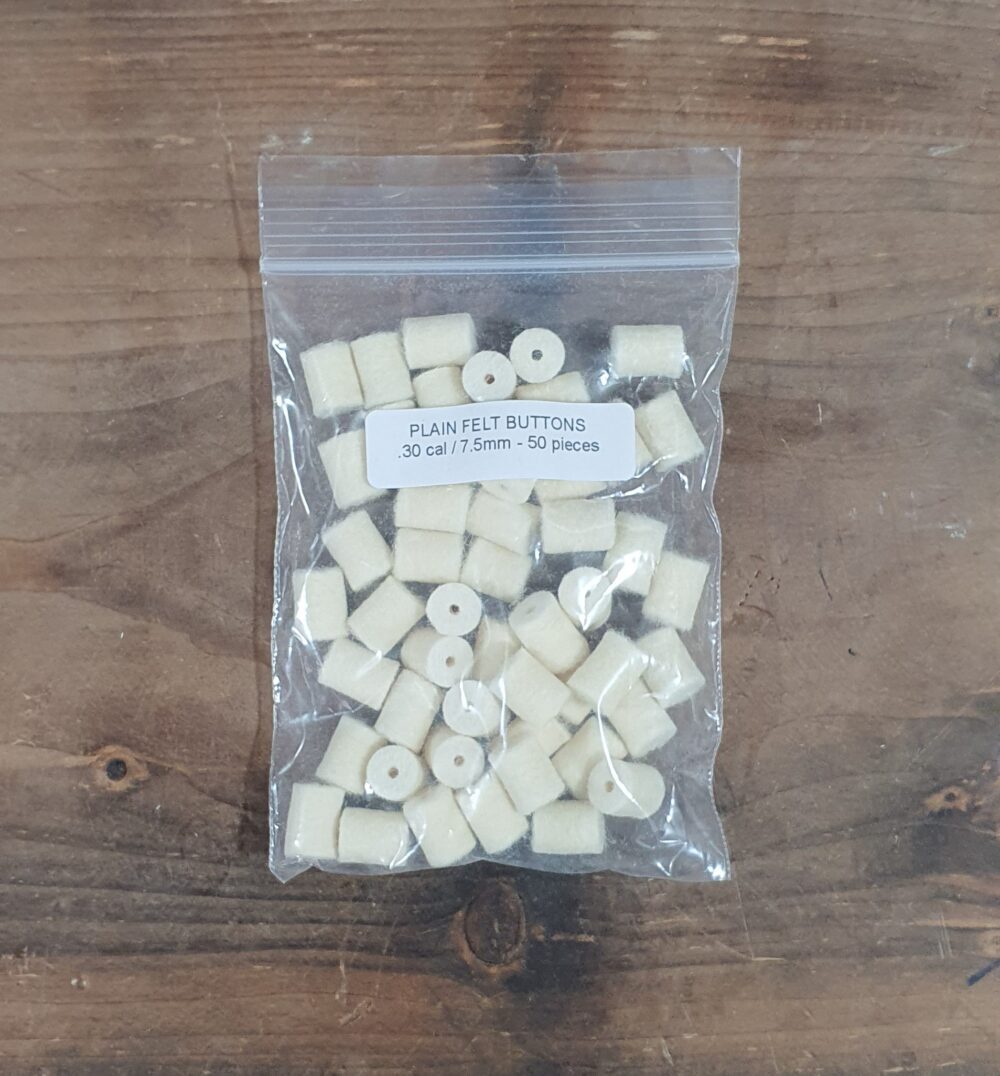PatchWorm Plain felt cleaning buttons are very effective Lapping and or removing tough fouling. Hard felt conforms to the barrel lands and grooves for maximum contact. Just slide button on and pull it through. Can be used singly, stacked or even in tandem with patches - just slide patch on first, felt button second, then pull through. Generally, plain felt buttons and patches are sufficient for routine cleaning of most .30 Rifle Bores Works great with Wipe-Out and Patch-Out for jacketed bullet fouling.
