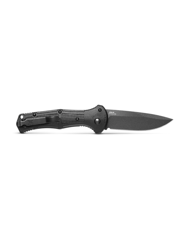 On the heels of the explosively successful launch of the Claymore™, we heard many enthusiastic requests for a plain-edge variant, and now we're proud to present the new 9070BK Claymore™. This highly anticipated variation of an instant hit retains every crowd-pleasing feature, including the ultra-tough and laser-sharp CPM-D2 blade, robust ultralight construction, and namesake-appropriate detailing. This non serrated push-button auto fires with authority, sure to energize casual-carry and hardcore users alike.